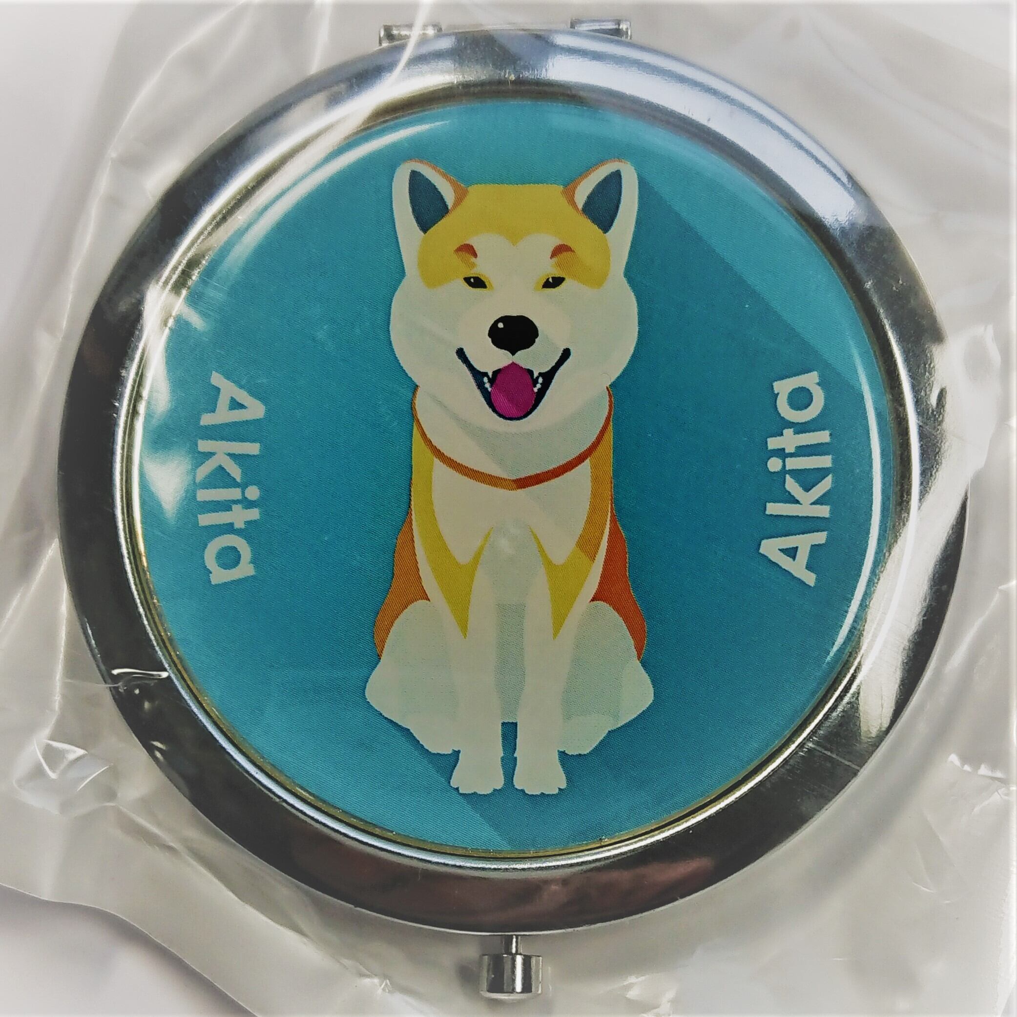 可愛い!秋田犬絵柄のコンパクトミラ―。