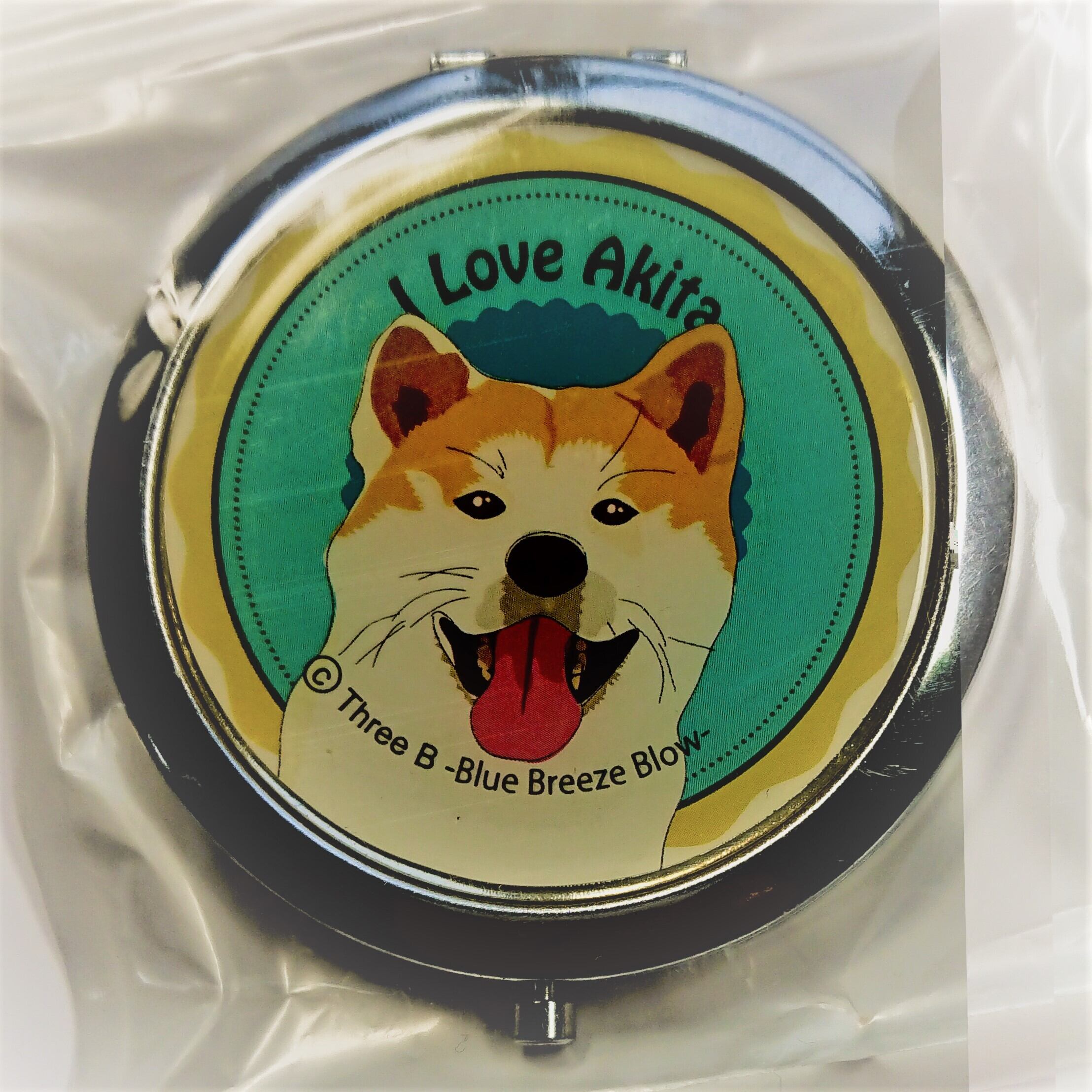 可愛い!秋田犬絵柄のコンパクトミラ―。拡大鏡付き。