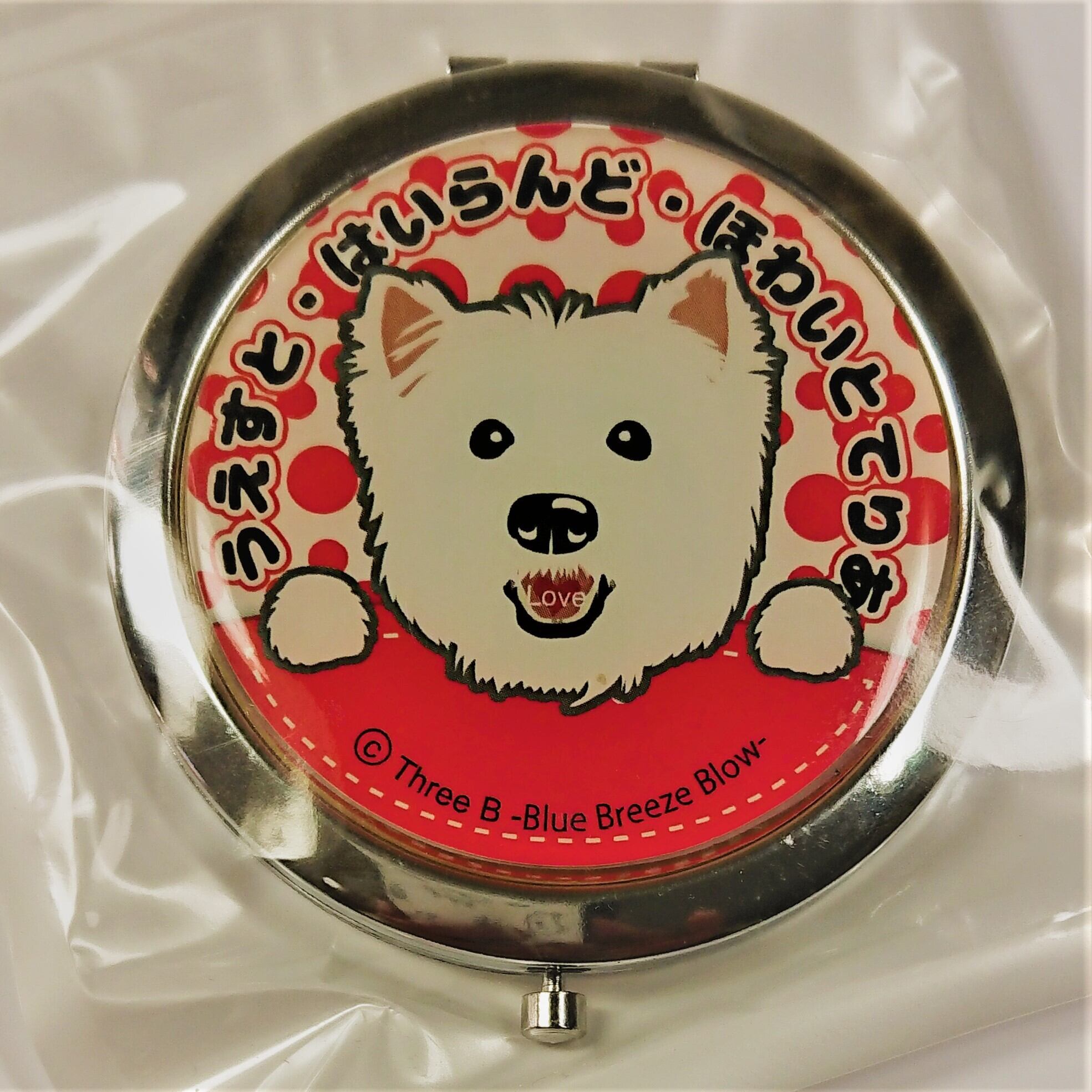 可愛い!ウエストハイランドホワイトテリア絵柄のコンパクトミラ―。拡大鏡付き。